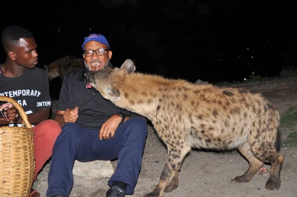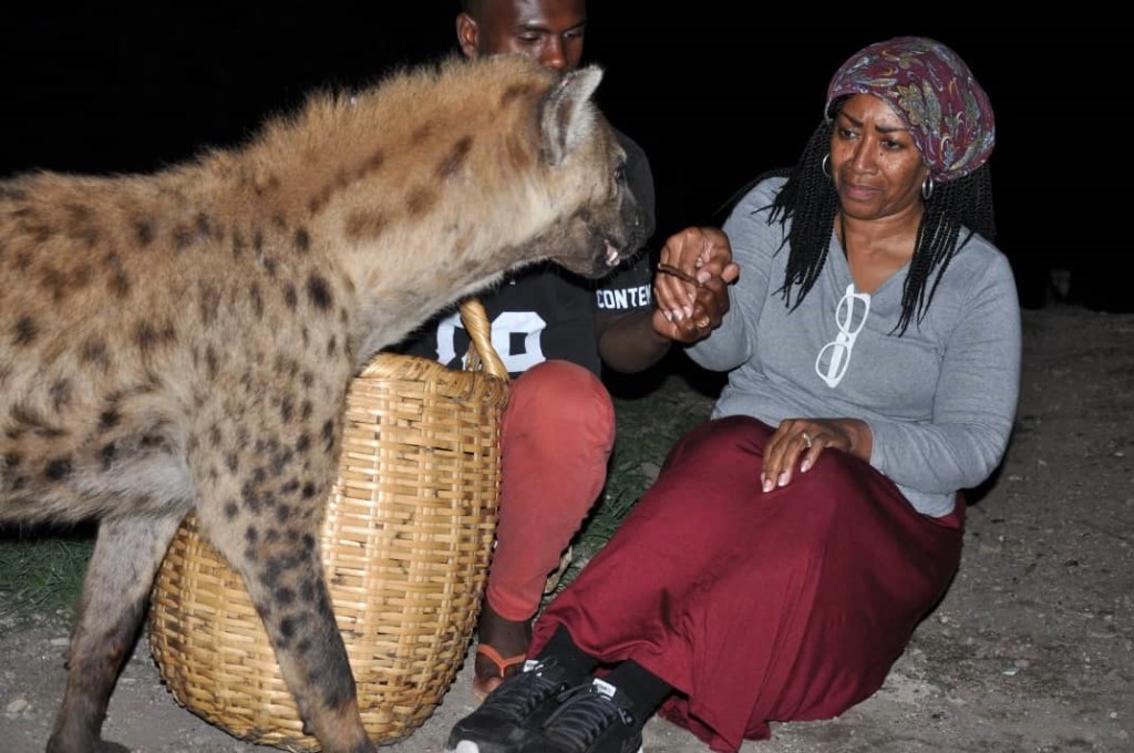 Feeding hyenas! Linda is a G!