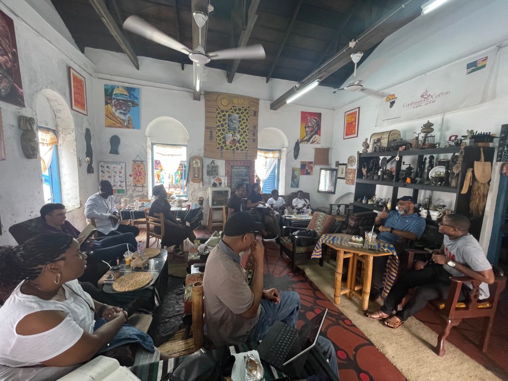 Teaching Couples over Coffee in the Cape Coast Castle in Ghana. Pastors and wives.